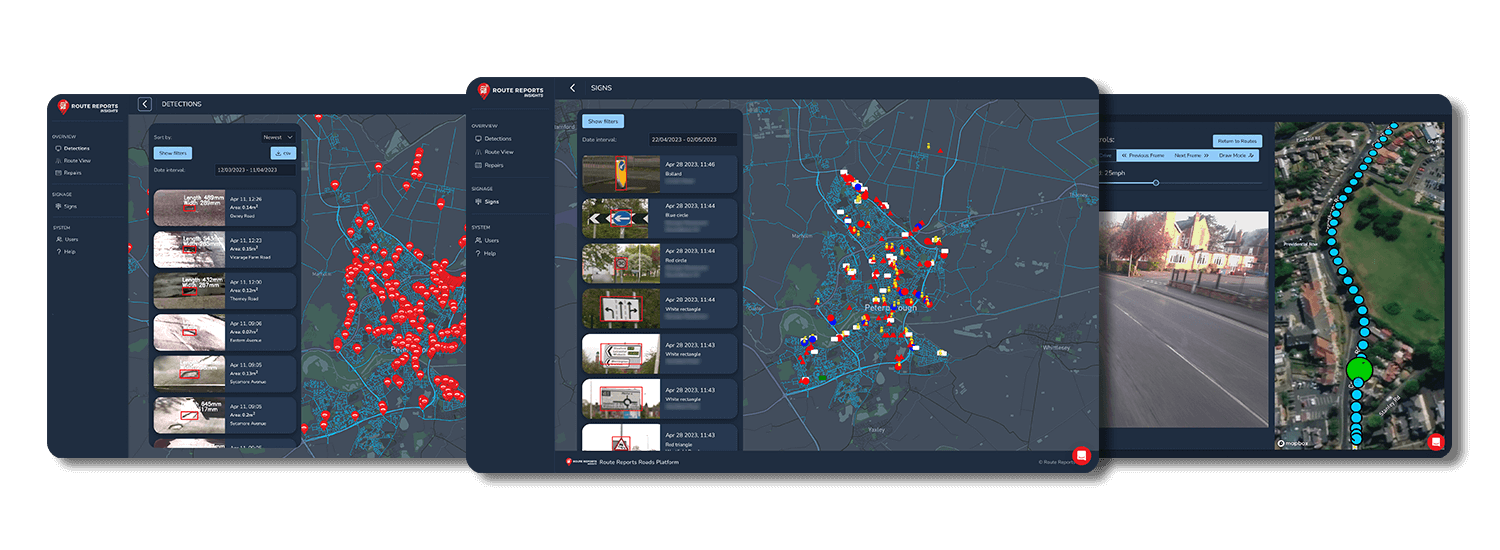 This is done by installing cameras onto vehicles utilising advanced computer vision models to detect defects, line condition, sign condition and street furniture.